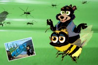In this next Buster Bear adventure, Buster follows Bumbles Bee into the Victoria Bug Zoo. Still under the effects of Captain Nemo's shrinking ray, Buster interacts with many of the zoo's exotic bugs, while trying to track down his pal. He finally hitches a ride on Bumbles, who leads him to the the largest leaf-cutter ant colony in Canada. After learning about the ants, he gets to meet the Ant Queen, as she busily lays eggs in her secret lair. The Queen finally lays a gold coin for Buster, leading him to the next clue in Nemo's adventure.