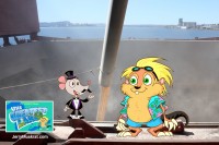 Jerry and Snappy imagine themselves being buried in quicksand, but Topper the Topmost Mouse shakes them out of the fantasy. They’re actually in the cargo hold of a bulk ship, standing on Topper’s grain shipment to the east coast. Together, they discover the history of Thunder Bay, from its beginnings as the separate towns of Port Arthur and Fort William, to the present western gateway to the St. Lawrence Seaway. While learning about the Port of Thunder Bay, Jerry’s pal Steve Adore makes a surprise appearance. He tells Jerry how im-port-ant shipping is from an economic and an ecological point-of-view. By the end, Jerry’s ready to move on to Thunder Bay Museum to find his next gear for Captain Nemo’s time machine.